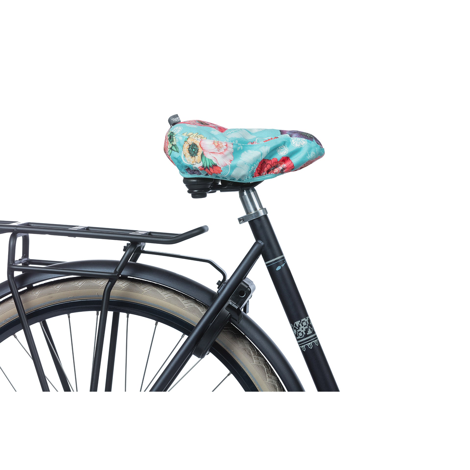 Het Basil Bloom Field zadeldekje is een vrolijke en hippe zadelhoes met een handgeschilderde bloemenprint. Hij komt goed van pas bij een fikse regenbui, maar is door de leuke kleur ook goed ter decoratie van je fiets te gebruiken.