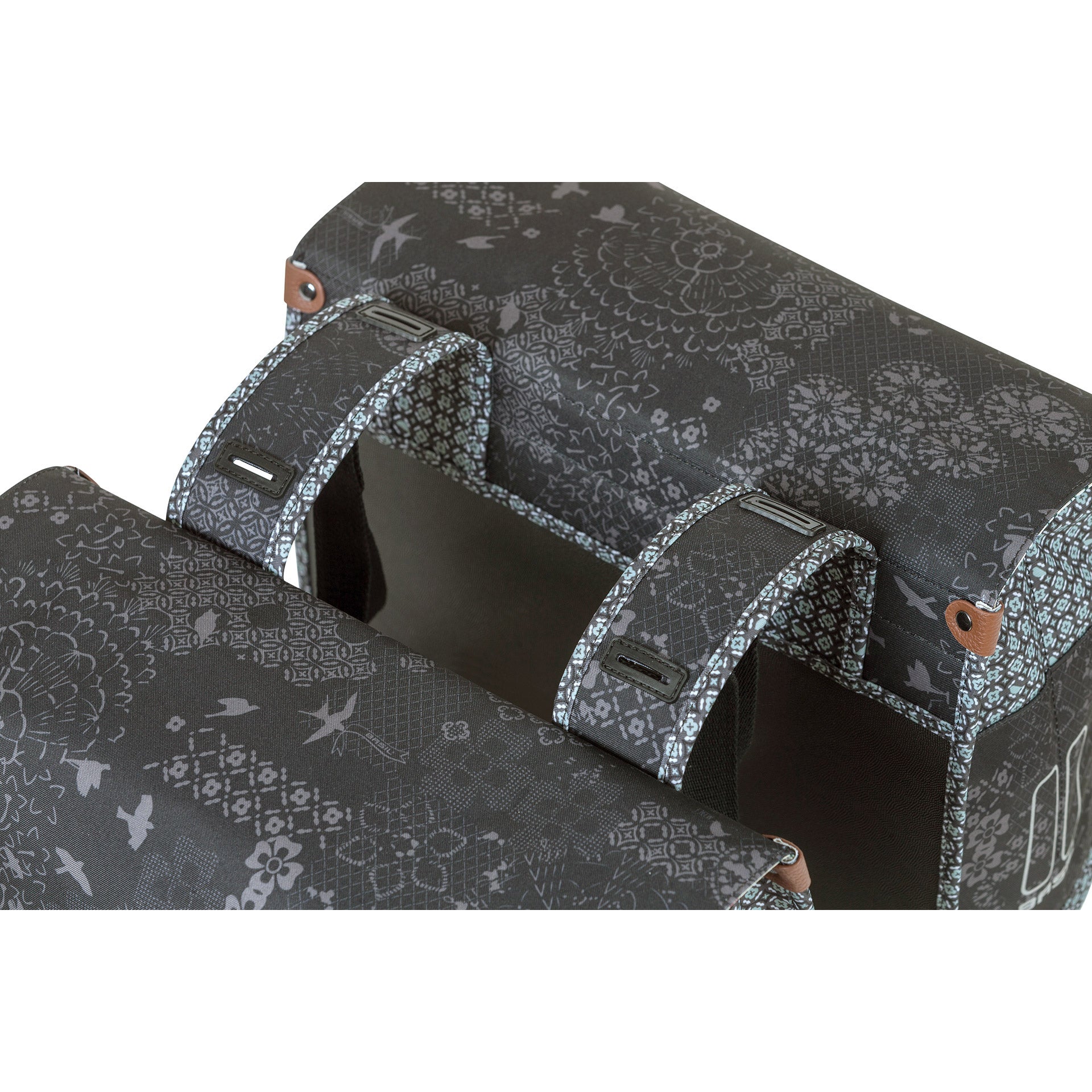 De Basil Bohème Dubbele Fietstas is een stijlvolle zwarte fietstas met een bohemien print. Met een inhoud van 35 liter biedt deze tas voldoende ruimte voor boodschappen, sportspullen en andere benodigdheden. De fietstas is geschikt voor diverse bagagedragers, inclusief e-bikes, en heeft stevige binnenvoering en kunstlederen details. Het waterafstotende polyester zorgt ervoor dat de inhoud van de tas droog blijft bij een kleine regenbui. De reflectiedetails zorgen voor betere zichtbaarheid in het donker. De tas kan op twee manieren bevestigd worden dankzij het Universal Bridge systeem. De fietstas is afneembaar in combinatie met een adapterplaat, die apart verkrijgbaar is. Specificaties: - Geschikt voor diverse bagagedragers, inclusief e-bikes - Waterafstotend polyester - Reflectiedetails voor betere zichtbaarheid - Inhoud: 35 liter - Materiaal: Polyester - Kleur: Zwart - Sluiting hoofdvak: Kliksluiting - Laptopvak: Nee - Zijvak(ken): Nee - Voorvak(ken): Nee - Diefstalbeveiliging: Nee - Waterbestendig: Spatwaterdicht - Snelbinders mogelijk: Ja - Afneembaar: Afneembaar i.c.m. MIK-systeem - Handvat: Nee - Draagcapaciteit: 10 kg totaal, maximaal 5 kg per tas - Garantie: 2 jaar, via het verkooppunt waar je het product hebt gekocht - Binnenvak: Nee