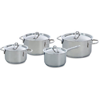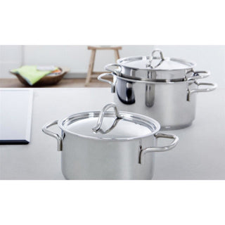 . Inhoud set: Kookpan 16 cm met deksel, Kookpan 18 cm met deksel, Kookpan 20 cm met deksel, Steelpan 16 cm met deksel. Warmtebron: Elektrisch, Halogeen, Keramisch, Gas, Inductie en Oven. Ovenvast tot 230°C. Vaatwasser bestendig. Materiaal: Roestvrij staal. PFAS-vrij.
