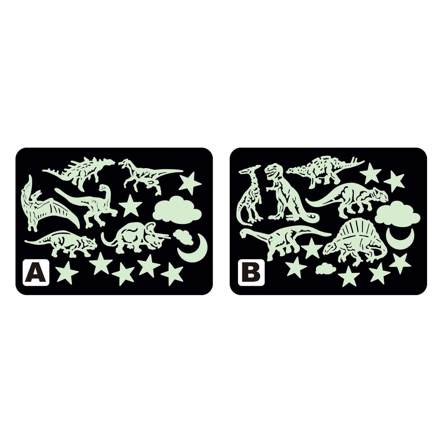 Laat het plafond of de muren van de kinderkamer droomachtig oplichten! In deze leuke set zitten 16 glow-in-the-dark stickers van dino’s, sterren, een wolk en een maan. De stickers zijn zelfklevend en geschikt voor kinderen vanaf 3 jaar oud.