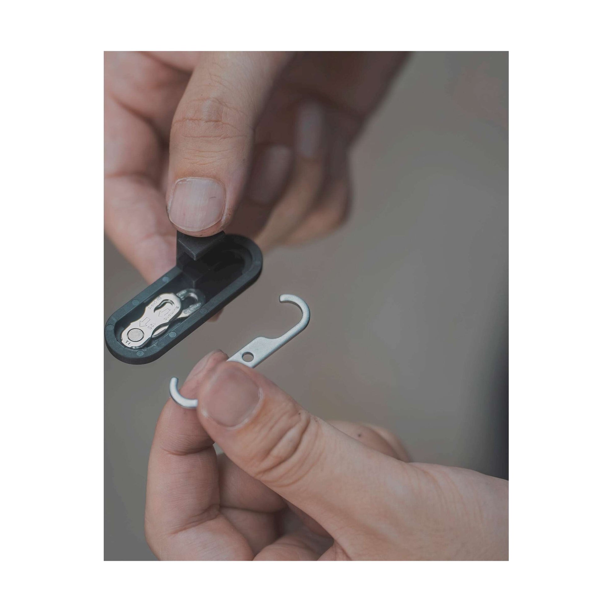 Een ultralichte draagbare kettingbreker van aluminiumlegering die 13s- en Campagnolo-kettingen met holle pennen ondersteunt en meer gemak bij opslag biedt dankzij het compacte formaat na het opvouwen. Inclusief opbergruimte voor een kettinghaak en kettingpin.