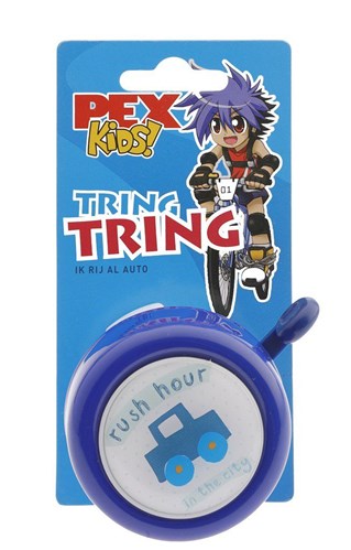 De PexKids kinderbel 'ik rij al auto' is een donkerblauwe fietsbel met een afbeelding van een auto. Deze bel heeft een basiskleur van blauw en een klemdiameter van 22.2 mm. De bel is gemaakt van kunststof en staal en heeft een hoogte van 45 mm. De bel maakt een vrolijk tring-tring geluid en heeft geen verlichting. De PexKids kinderbel is speciaal ontworpen voor kinderfietsen en heeft een basic fietsbel vorm. De bel wordt bevestigd met een klem met 2 schroeven. Het advies is om de Pex-Kids fietsfun te gebruiken, zodat je goed gehoord en gezien wordt op de fiets. De bel wordt geleverd op een kaart.