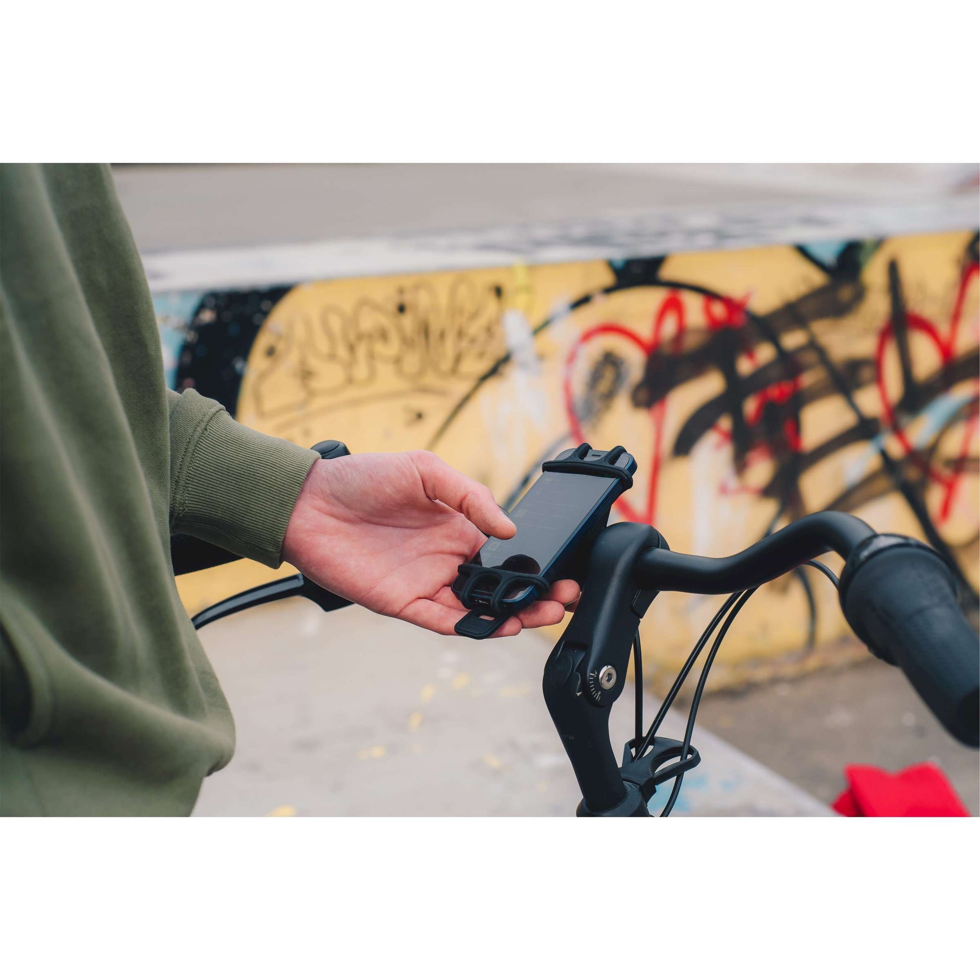 Celly telefoonhouder universeel zwart. In deze flexibele, silicone fietshouder van Celly past elke smartphone precies.