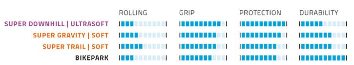 De Big Betty is terug en is uitgerust met de nieuwste technologieën. Deze vouwband is een veelzijdige allrounder voor downhill- en enduro-ritten in verschillende omstandigheden, van droog tot vochtig terrein. De band functioneert perfect aan het achterwiel in combinatie met de Magic Mary band. Met zijn lange, schuine remranden biedt hij maximale remtractie, terwijl de extreem stabiele schouderblokken zorgen voor uitstekende grip in de bochten. Het open en agressieve profiel zorgt voor optimale grip en zelfreiniging. Productspecificaties: - Grootte: ETRTO 65-584 (27.5 x 2.60 inch) - Type: Vouwband - Rubbermengsel: Addix Soft - Uitvoering: Super Trail - Kleur: Zwart - Seal: TLE (tubeless easy) - Gewicht: 1220 gram - Bandenspanning: max. 3.00 Bar (max. 45psi) - Max. belasting: 115 kg - EPI: 50 - E-bike: E-50 - Profiel: HS608 - Binnenbanden: SV19 Freeride